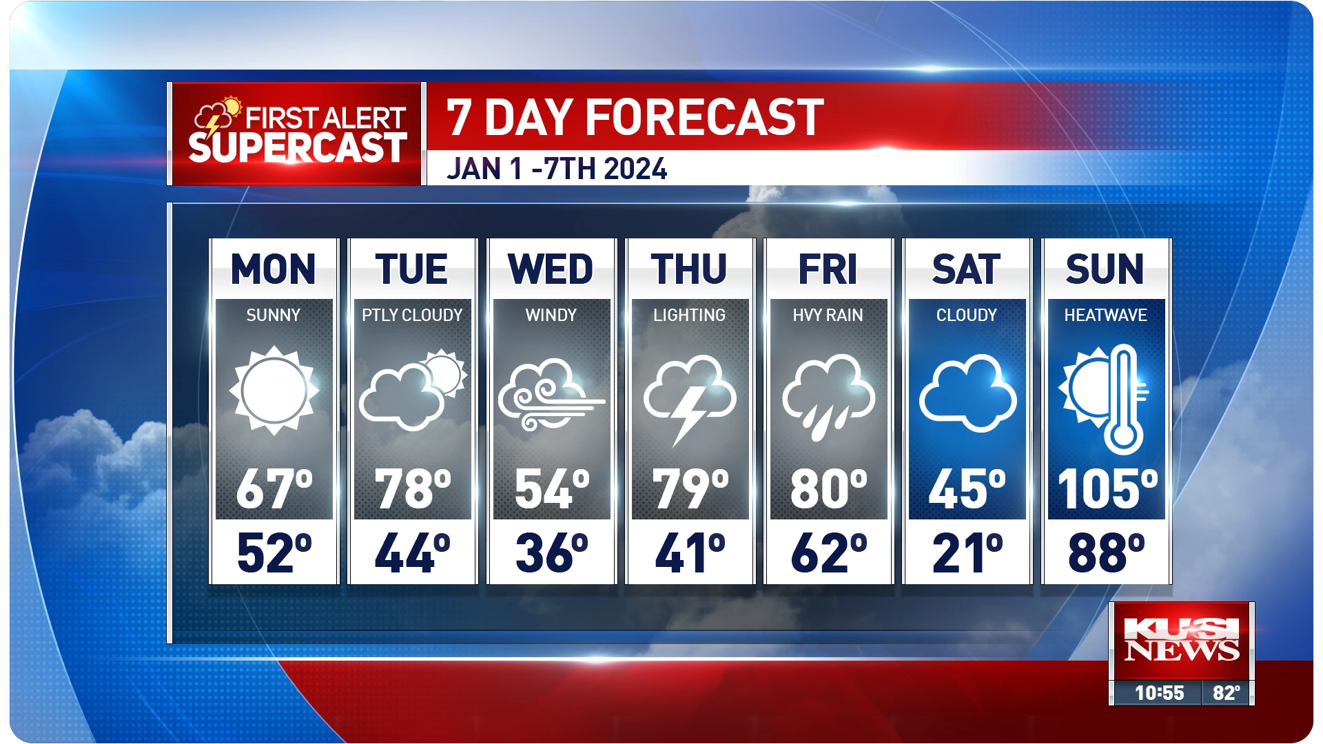 To ensure the station’s on-air look kept pace with industry trends, I also refreshed the graphics package four times during my tenure. Each redesign modernized the visual identity and reinforced KUSI’s credibility in a crowded market.